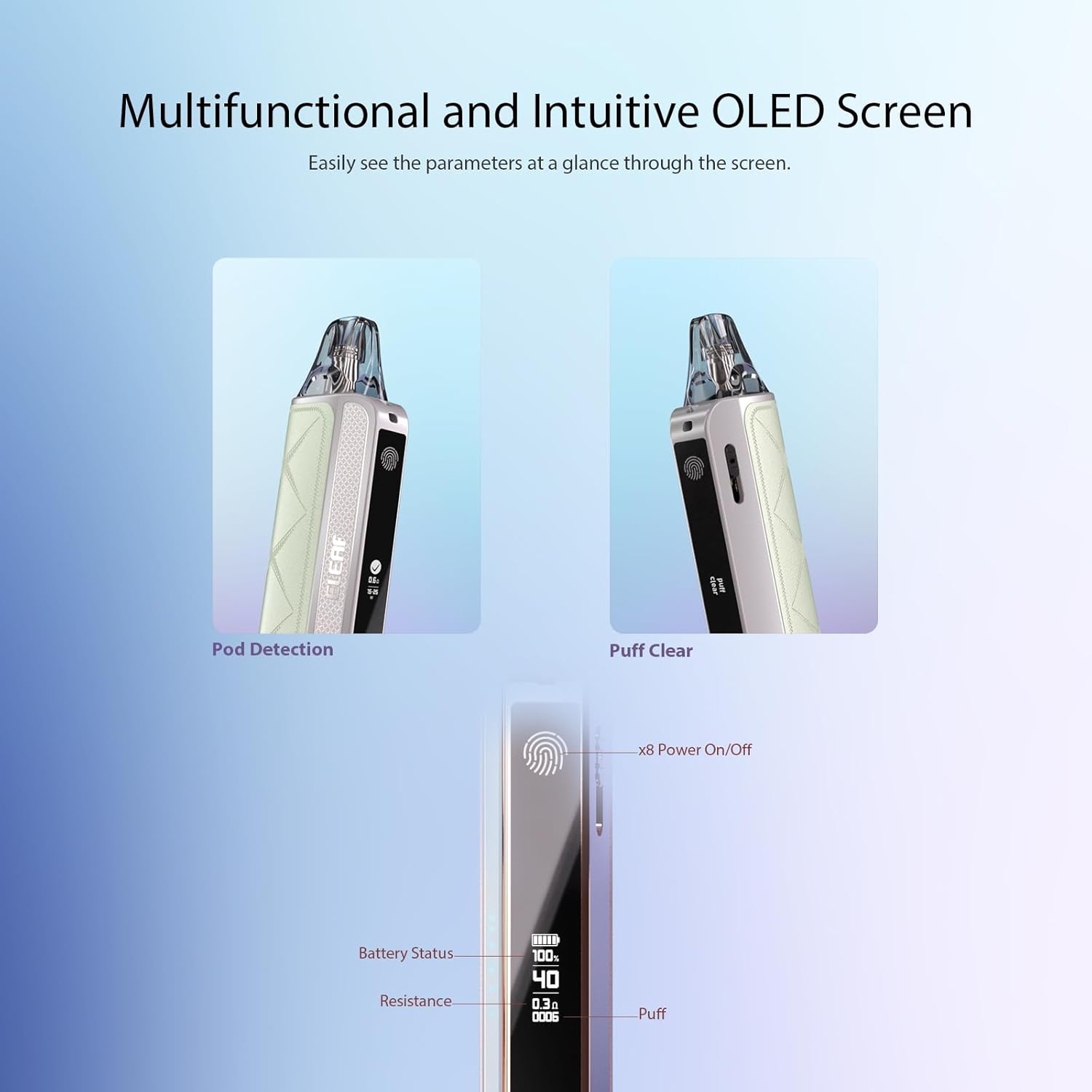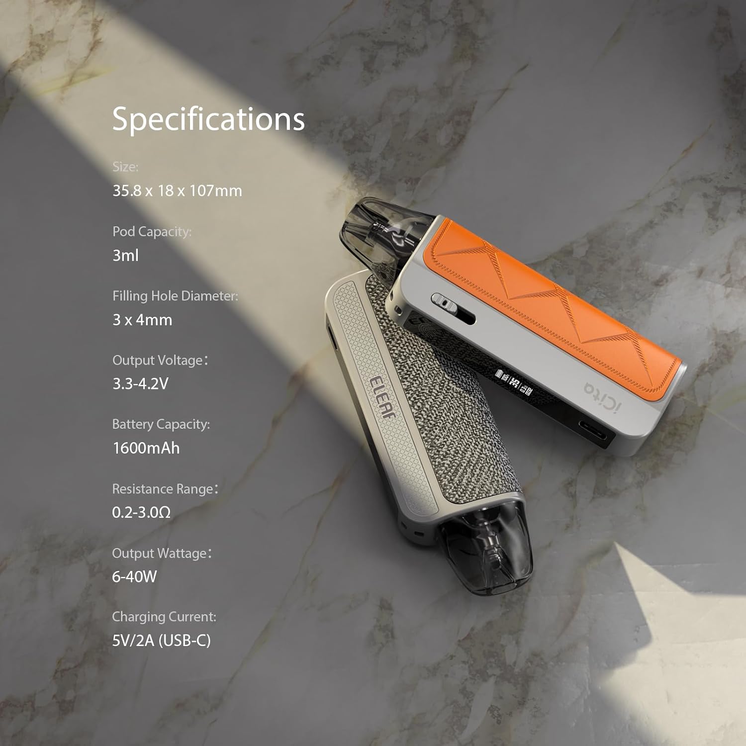 The Eleaf iCita Kit Pod System showcases an elegant flat design that seamlessly blends zinc alloy construction with premium leather accents. This sophisticated device features a high-end OLED touchscreen display for precise power control ranging from 6-40W, allowing users to fine-tune their vaping experience. The adjustable airflow system provides further customization, while the built-in 1600mAh battery supports 5V/2A fast charging for minimal downtime between sessions.