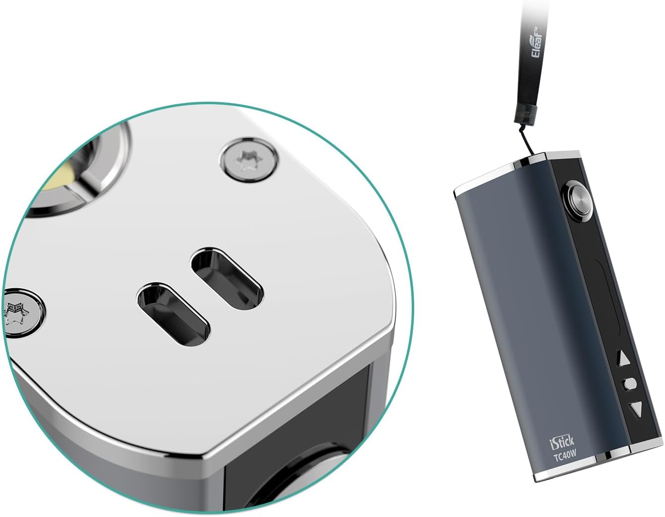 Measuring just 3.62 x 2.23 x 7.73 cm and weighing only 110 grams, the iStick TC 40W offers exceptional portability without compromising performance. The device features durable stainless steel threading for enhanced wear resistance and an elastic spring-loaded connector for superior compatibility. The specially designed top cap includes a lanyard hole for added portability and convenience during use.