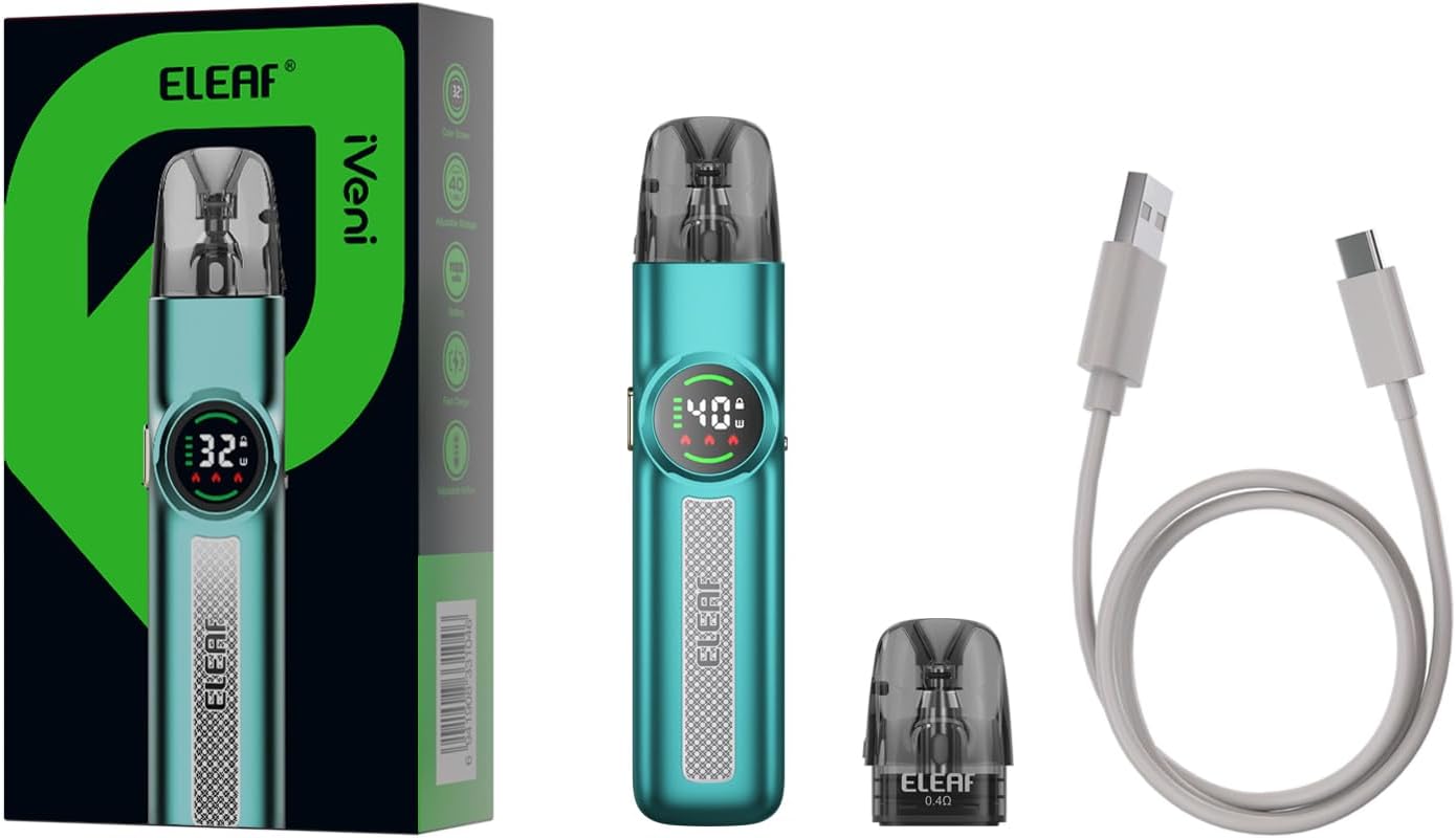 The Eleaf iVeni Pod Kit combines a sleek metal alloy design with a powerful 1100mAh battery and adjustable airflow for customized vaping. Its digital color display shows power, resistance, and battery status clearly. Ideal for users seeking a reliable, stylish, and efficient e-cigarette without nicotine.