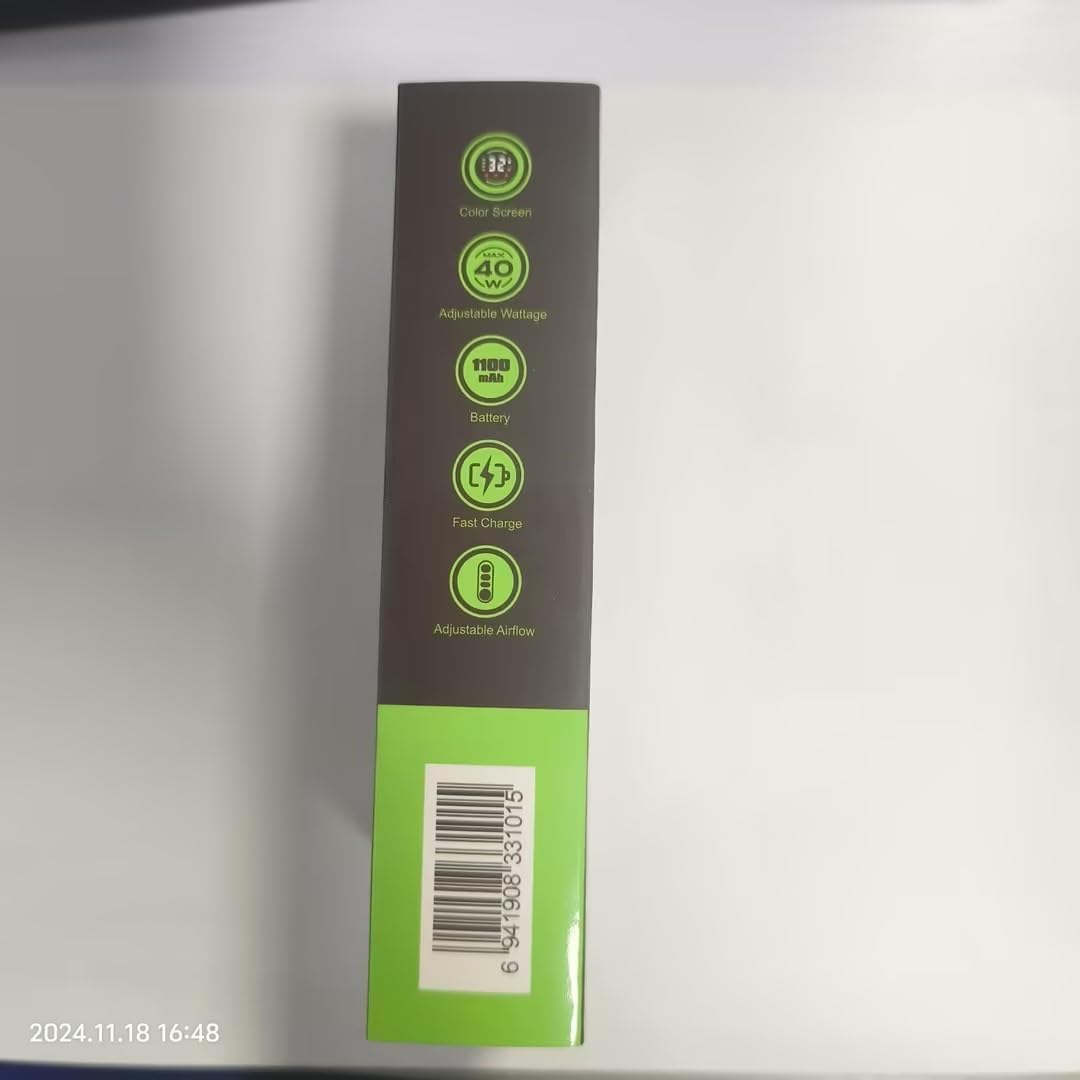The 1100mAh battery offers extended usage, typically lasting a full day with moderate vaping, and supports 2A fast charging for quick replenishment via USB Type-C.