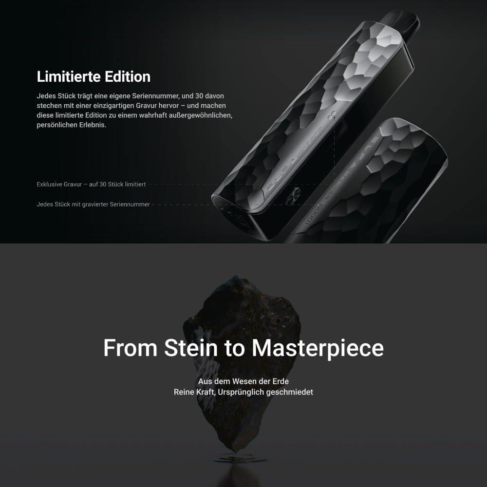 The ELFBAR ELFA MASTER Limited Edition electric cigarette combines a powerful 850mAh battery with USB-C fast charging for long-lasting performance. Its compact design and intuitive color display make it easy to monitor settings and use on the go. Compatible with Elfa & Tappo Pods, it offers variable power and a secure magnetic pod connection for a personalized vaping experience.