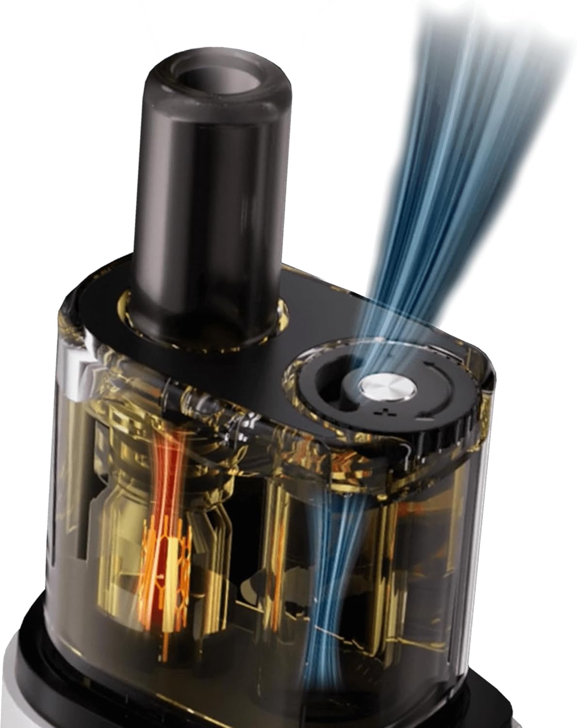 This pod system measures 107.85 x 31.45 x 21.50 mm and weighs just 52 grams, making it highly portable. It comes with a 4 ml pod capacity and includes two coils: a pre-installed 0.6 ohm coil and an additional 1.0 ohm coil for different vaping styles. The device supports a maximum charging current of 0.5A and operates at 5V, ensuring efficient performance and compatibility with standard chargers.