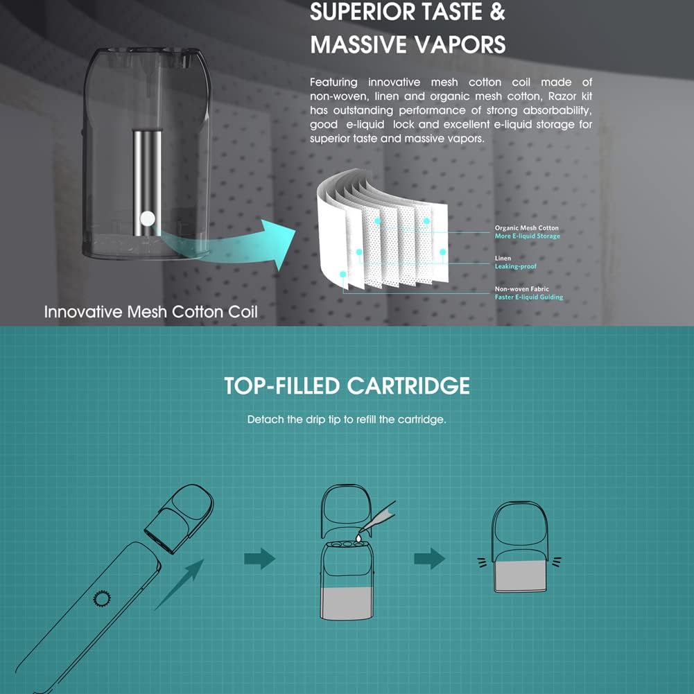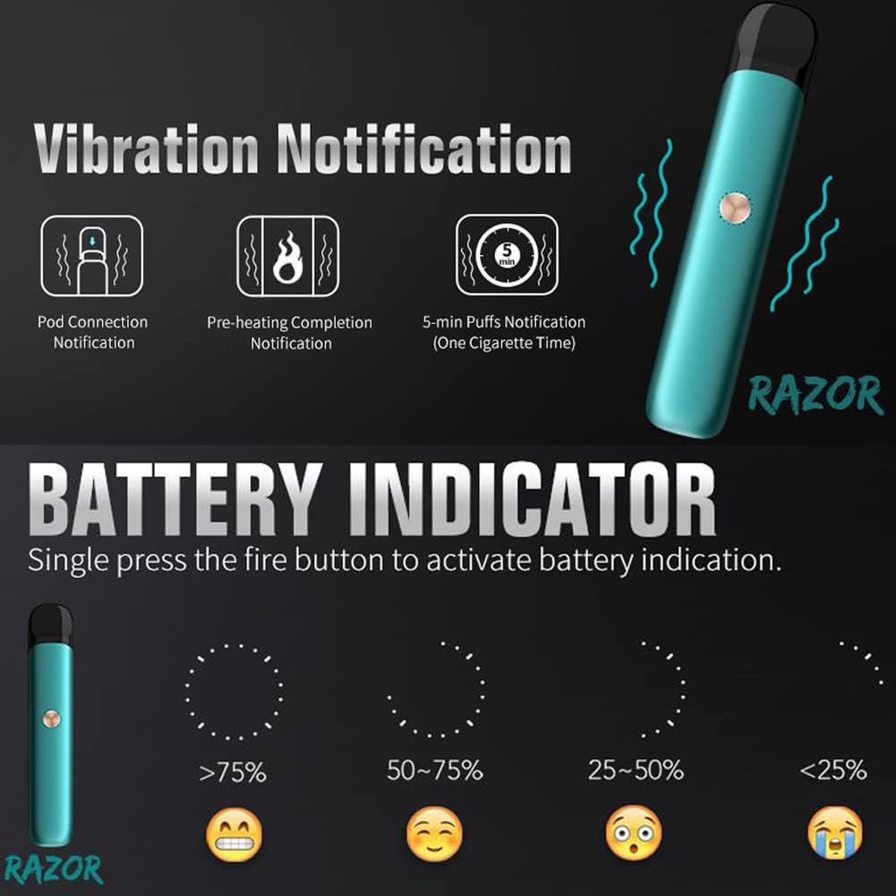This product is designed for adults looking for an easy-to-use electronic cigarette without nicotine or e-liquid included. It appeals to beginners due to its simple operation and safety features, as well as regular vapers who value portability and fast charging. The Razor Kit is perfect for those prioritizing convenience and consistent performance in a compact device.